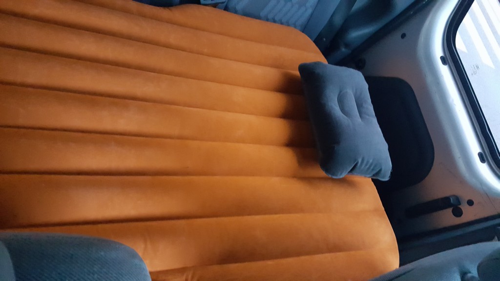 La prima notte non la scorderò mai: fu la più eccitante, emozionante, ma al tempo stesso critica e stressante, perché impiegai la maggior parte del tempo a organizzare il materasso e le gambe, troppo lunghe per essere distese. Avevo comprato un materasso gonfiabile apposito, che aveva una sorta di piede che riempiva lo spazio tra i sedili anteriori e quelli posteriori, di modo da avere un letto più largo, ma la lunghezza, ahimé, non cambiava, era quella tra i due sedili dell'auto. Alle 4:30 i crampi iniziarono presentarsi ed era chiaro che non potevo dormire sui sedili posteriori, Sì o sì dovevo trovare una soluzione per l'indomani, quando mi aspettava una delle 50 città più belle al mondo. Avrei avuto altre 8 ore di auto per pensare a un'alternativa.