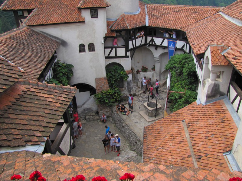 Il traffico si addensava mano a mano che mi avvicinavo al paesino in collina, famoso per la leggenda, che leggenda è e nulla più, di quel conte che succhiava sangue perché vampiro; poi eccolo lì, in alto, sulla sinistra, un castello attorno al quale è stato creato un complesso turistico allucinante, direi quasi vergognoso. Un intero villaggio che vive grazie all'afflusso turistico verso una fortezza normale, né più né meno bella di altre, sicuramente più vuota di altre, più sopravalutata di altre. Nella vallata case antiche si sono trasformate in ristoranti e negozi di souvenir, oppure, ancora più indecente, in case della paura, tipo quelle, montate su di un tir, che completano le feste patronali. L'interno, come scrivevo poc'anzi, è abbastanza vuoto, più che una rappresentazione veritiera è un museo dedicato alle varie famiglie che vi sono succedute, tra cui quella di Vlad, il conte della Valacchia, del quale rimane un ritratto e il suo albero genealogico, oltre a alcune spiegazioni sul suo mito.